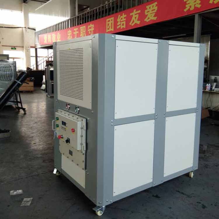 工業(yè)水冷式防爆冷風(fēng)機是一款利用壓縮機制冷,通過翅片式蒸發(fā)器與空氣換熱達到降溫效果的冷卻設(shè)備,也稱為冷氣機、工業(yè)空調(diào),主要是對生產(chǎn)環(huán)境或產(chǎn)品進行冷卻。根據(jù)冷卻流程可以選擇循環(huán)風(fēng)冷卻和全新風(fēng)冷卻二種方式。工業(yè)冷風(fēng)機具有出風(fēng)溫度低,要根據(jù)要求選擇-20—30度出風(fēng)溫度,還兼具除濕/加濕等功能。